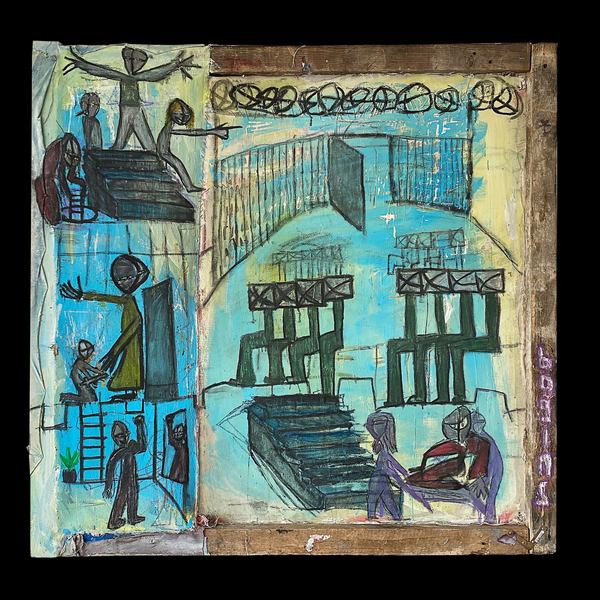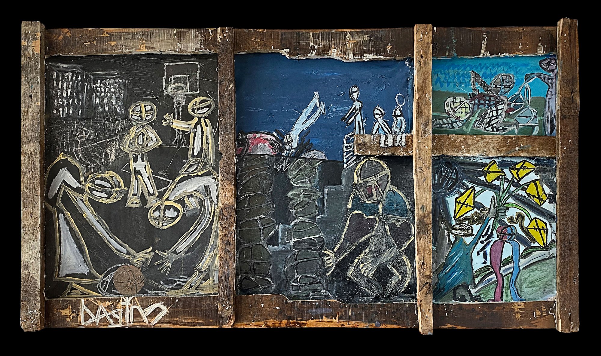 Olej, akryl, wyszywanie na płótnie
