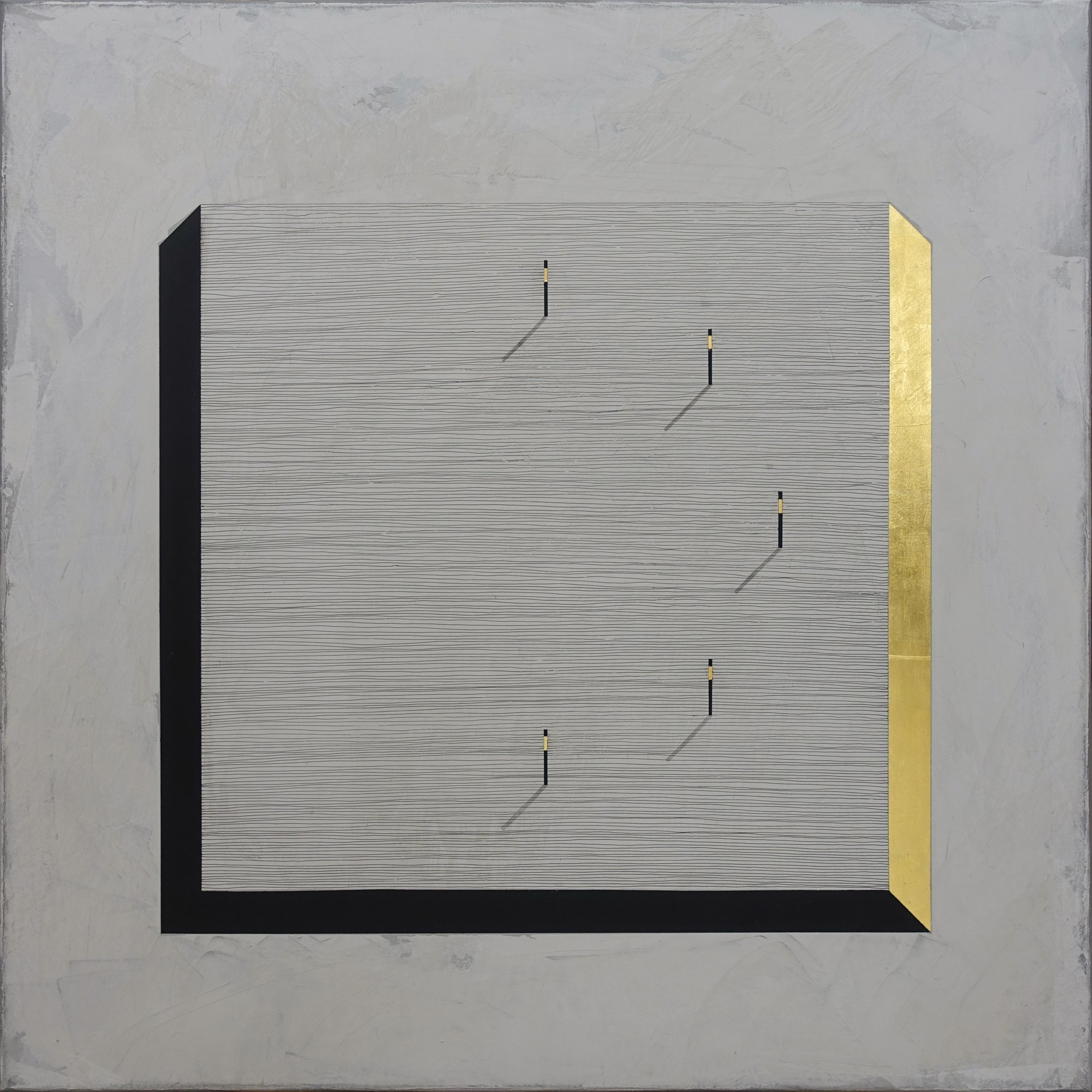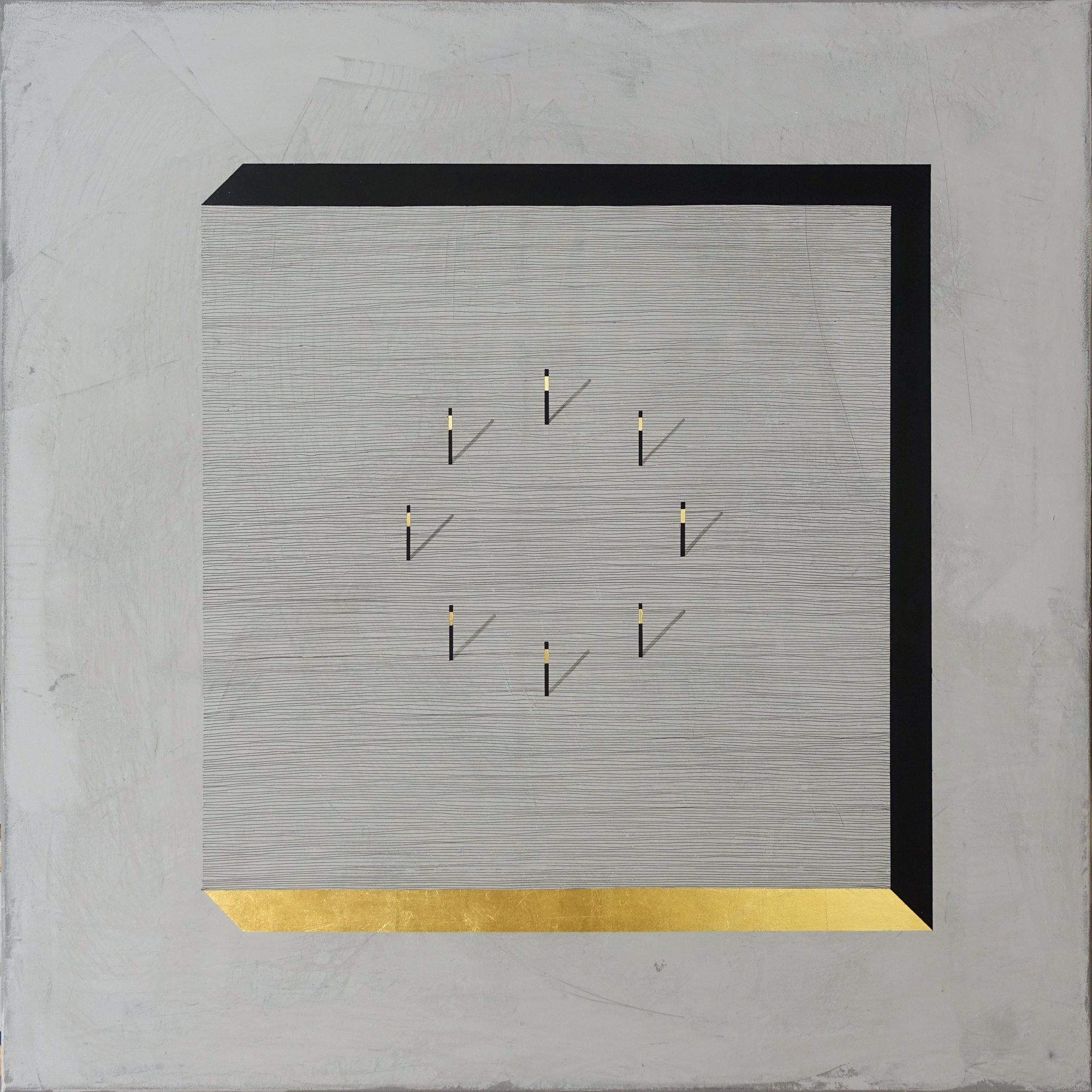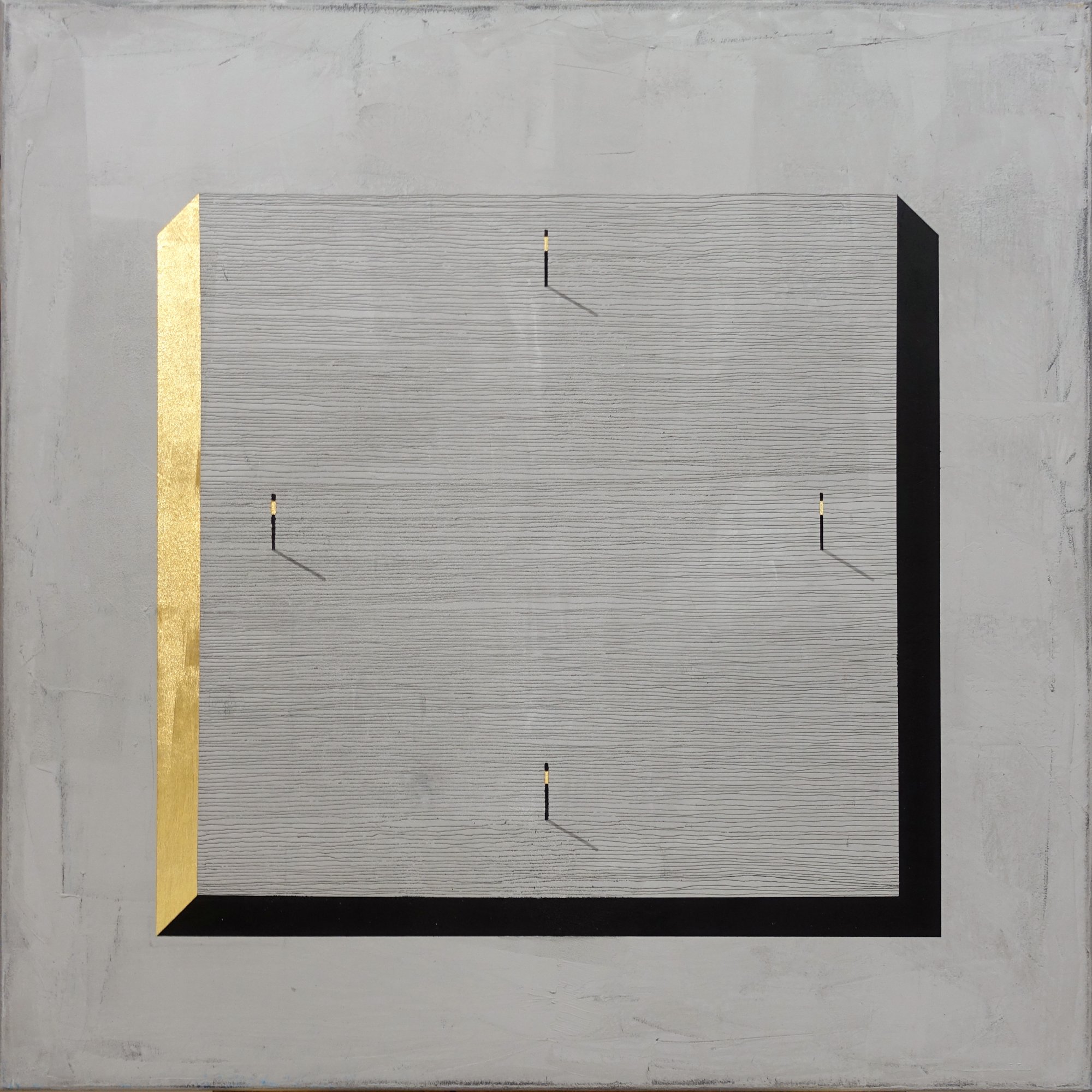 akryl, tusz indyjski, szlagmetal, colowood na płótnie