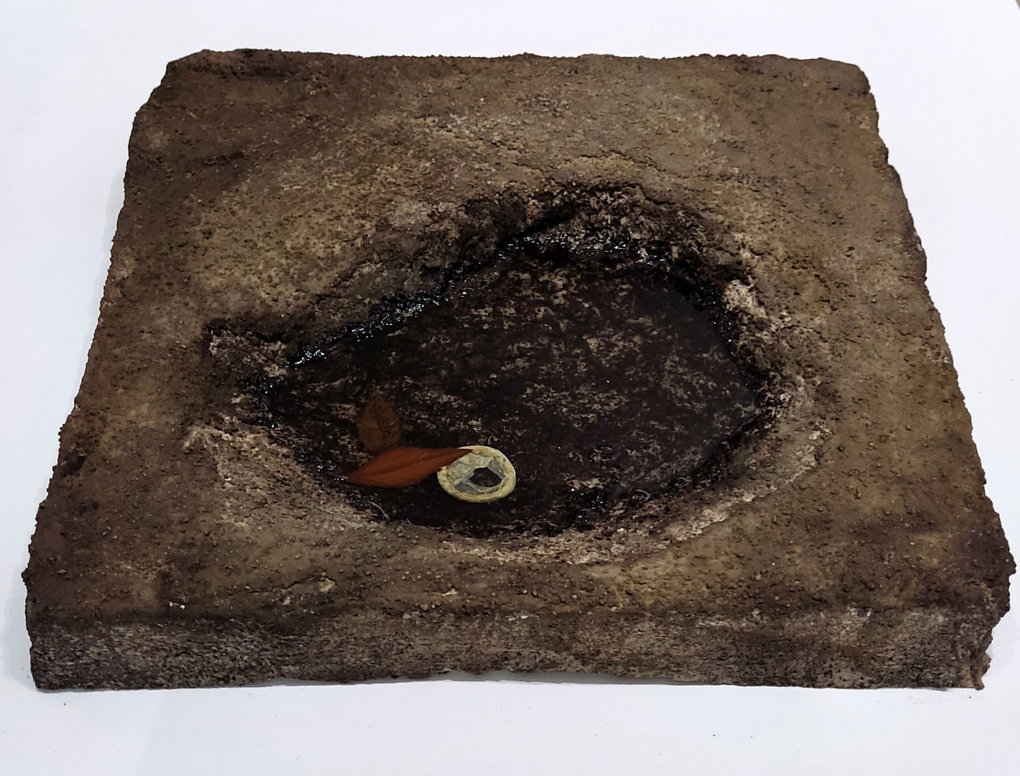 olej, akryl, kawa, patyna, żywica epoksydowa, beton architektoniczny, płótno, styrodur