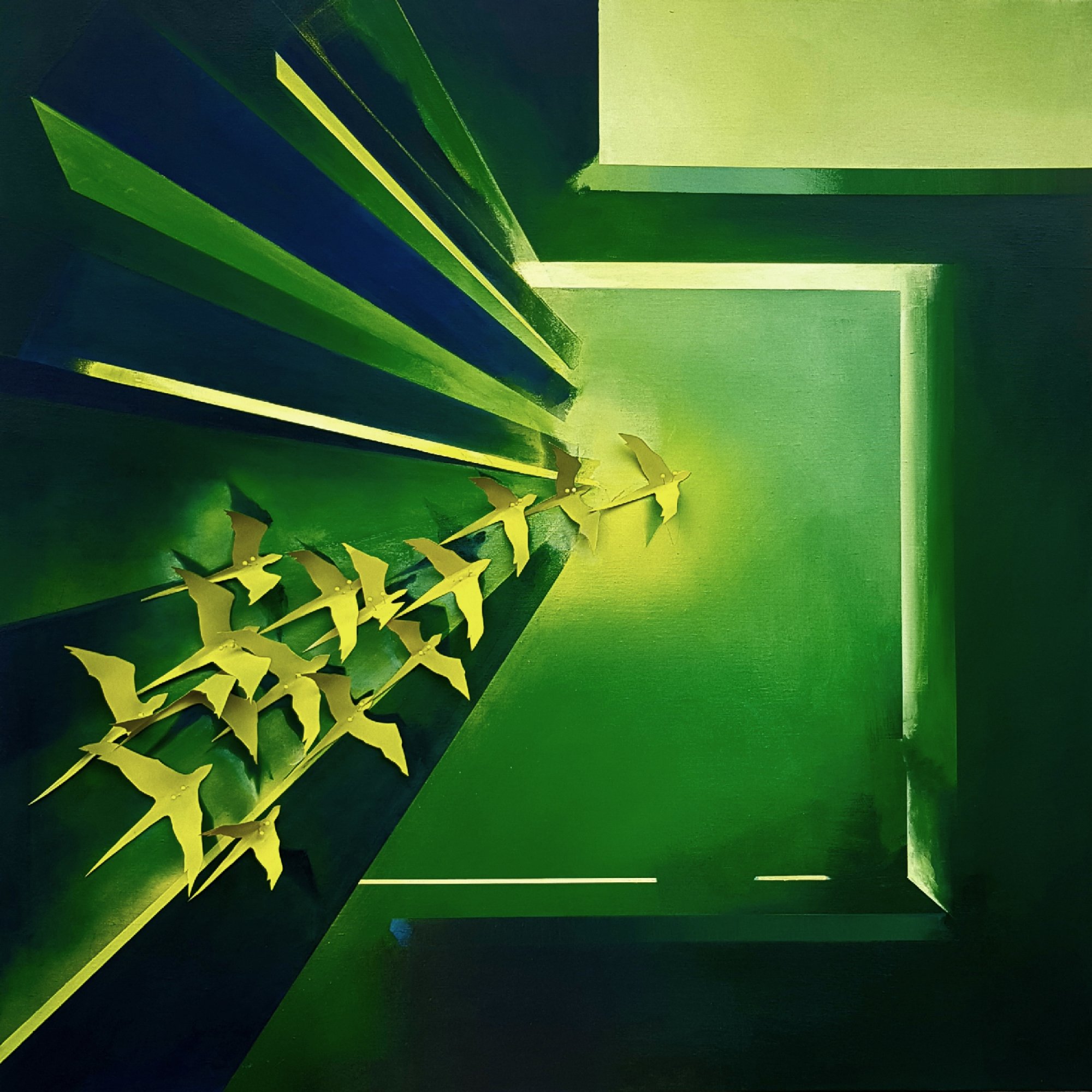 akryl + instalacja na płótnie