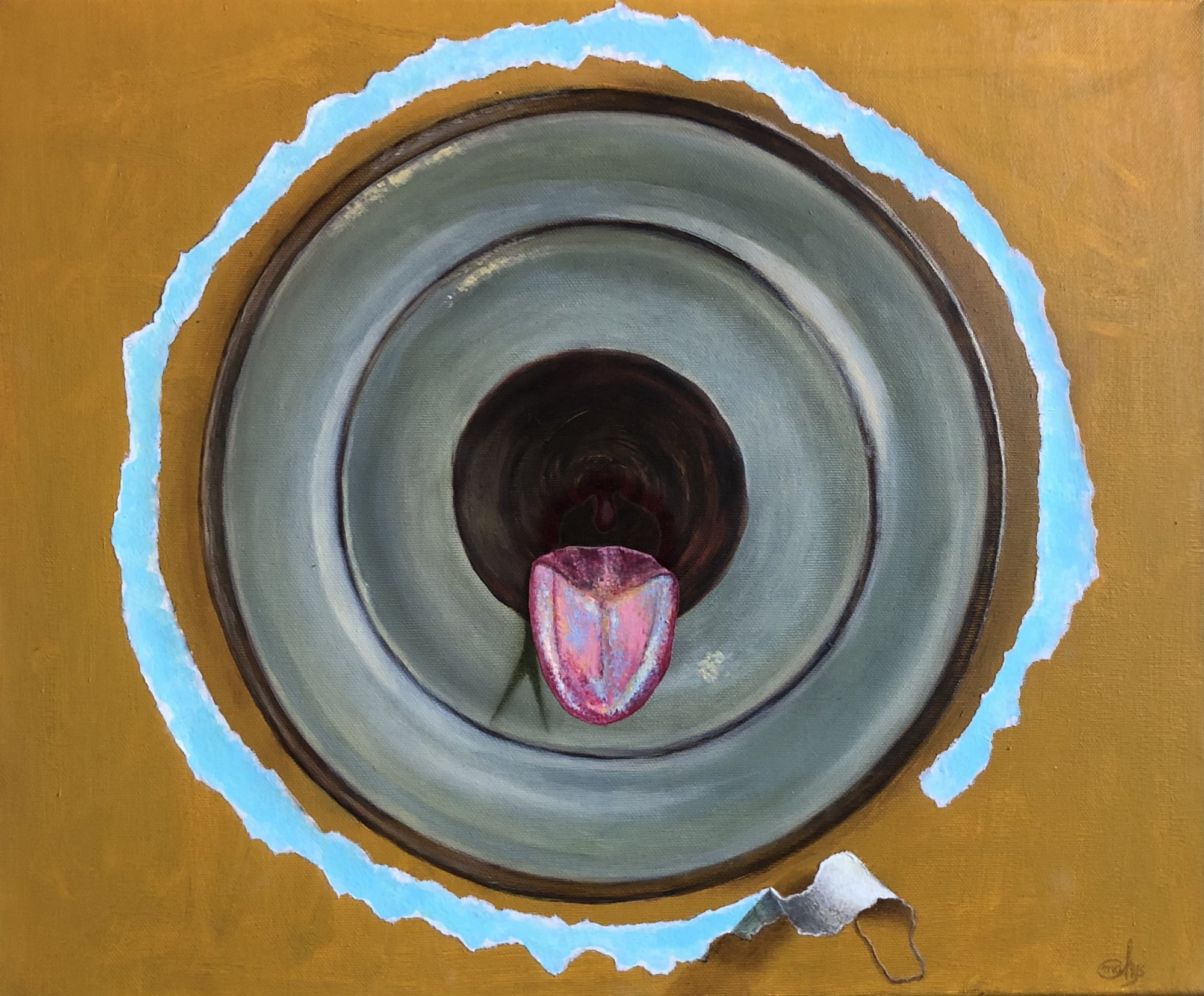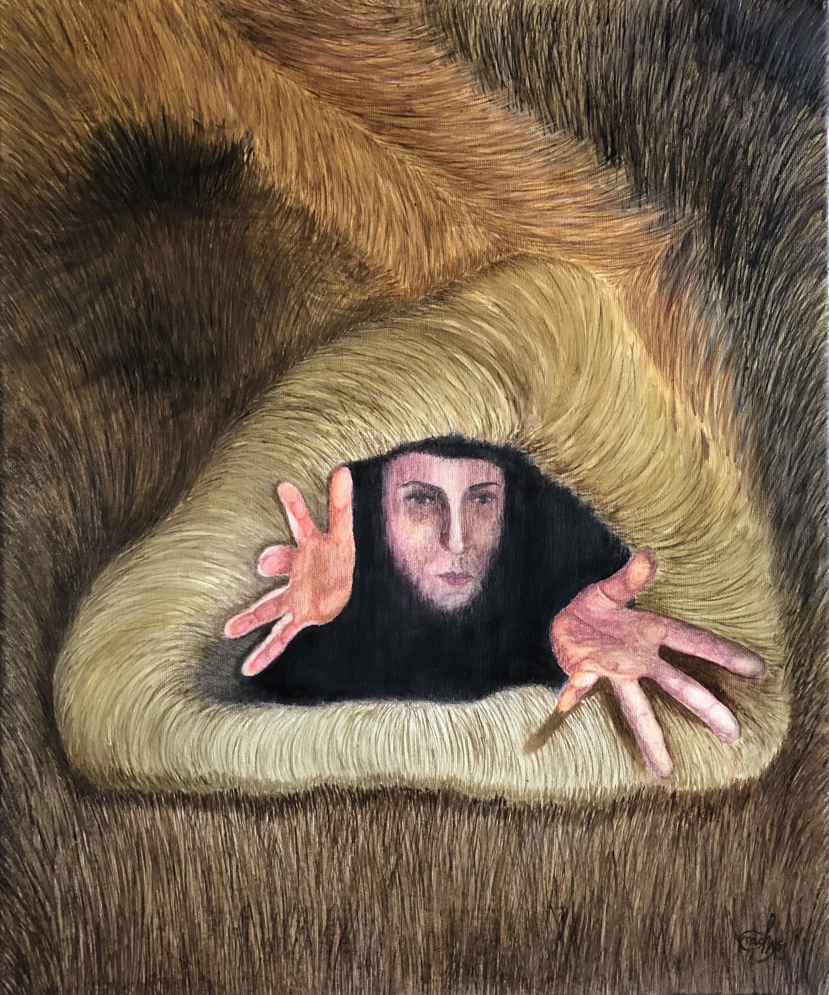 mieszana: olej na płótnie, kredki akwarelowe na płótnie