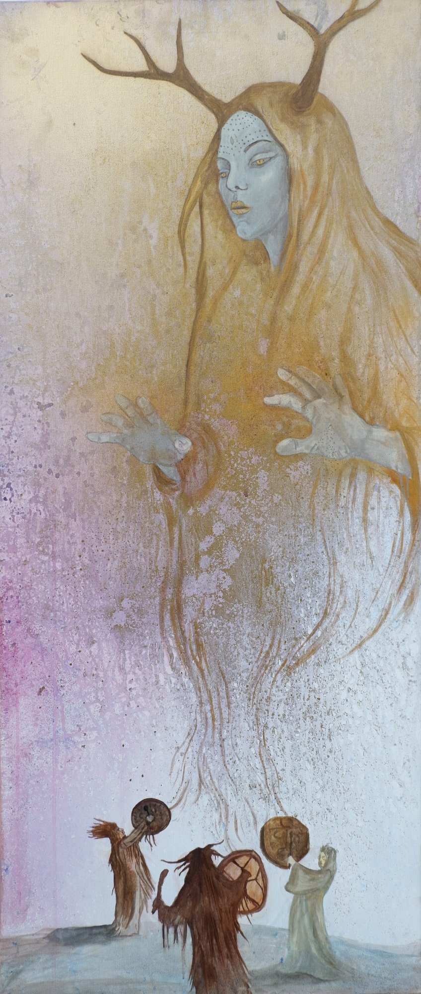 olej, akwarela na drewnianym tondzie