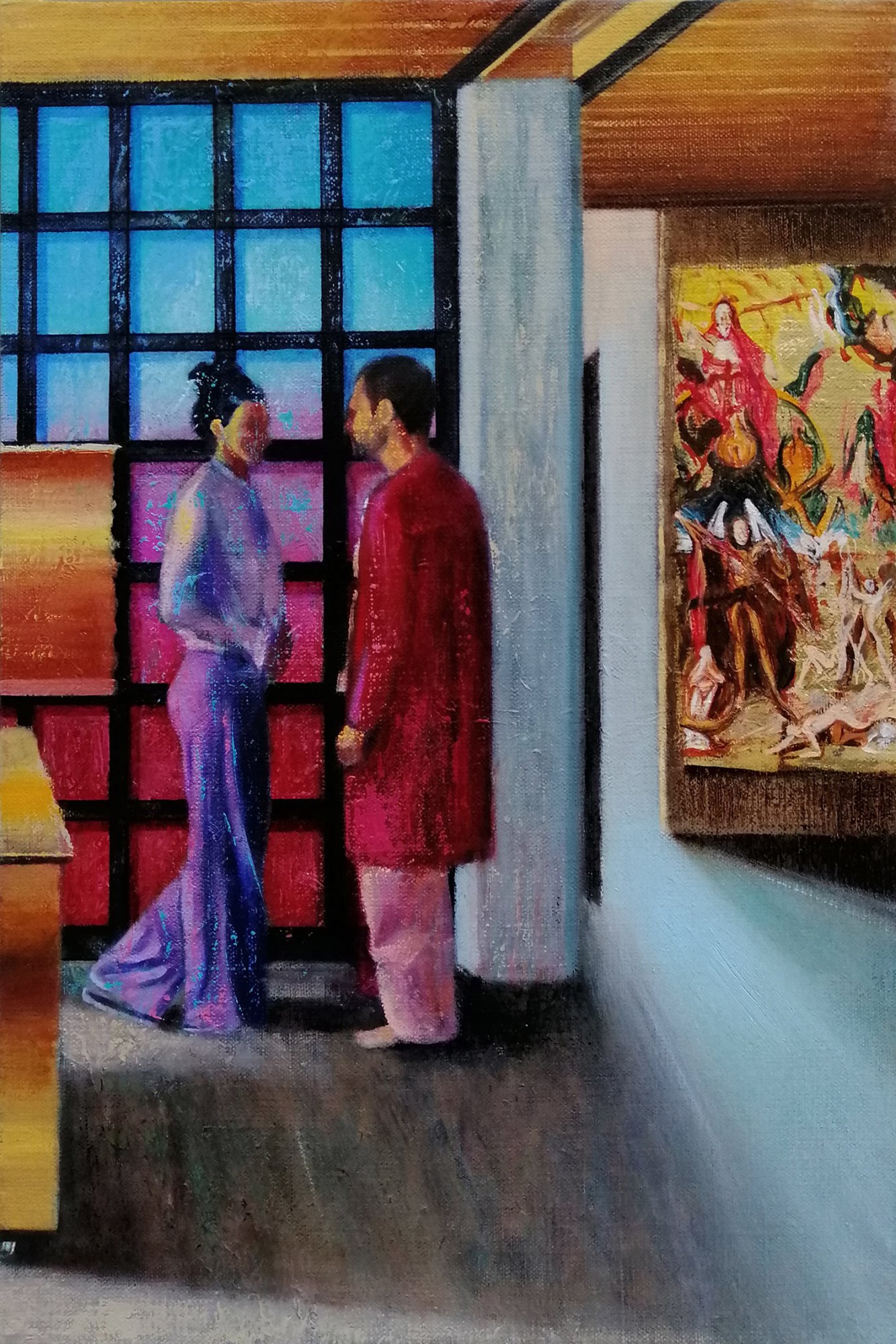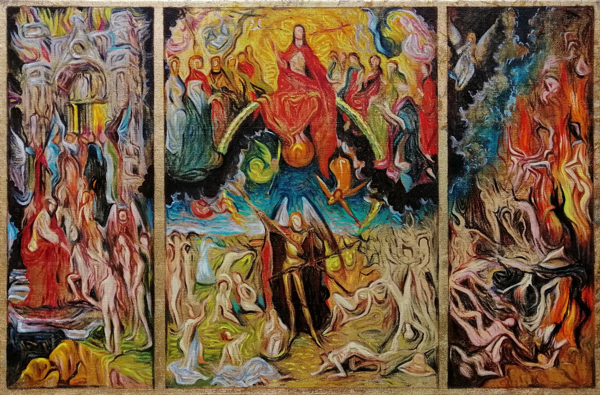 olej na płótnie, płatki złota