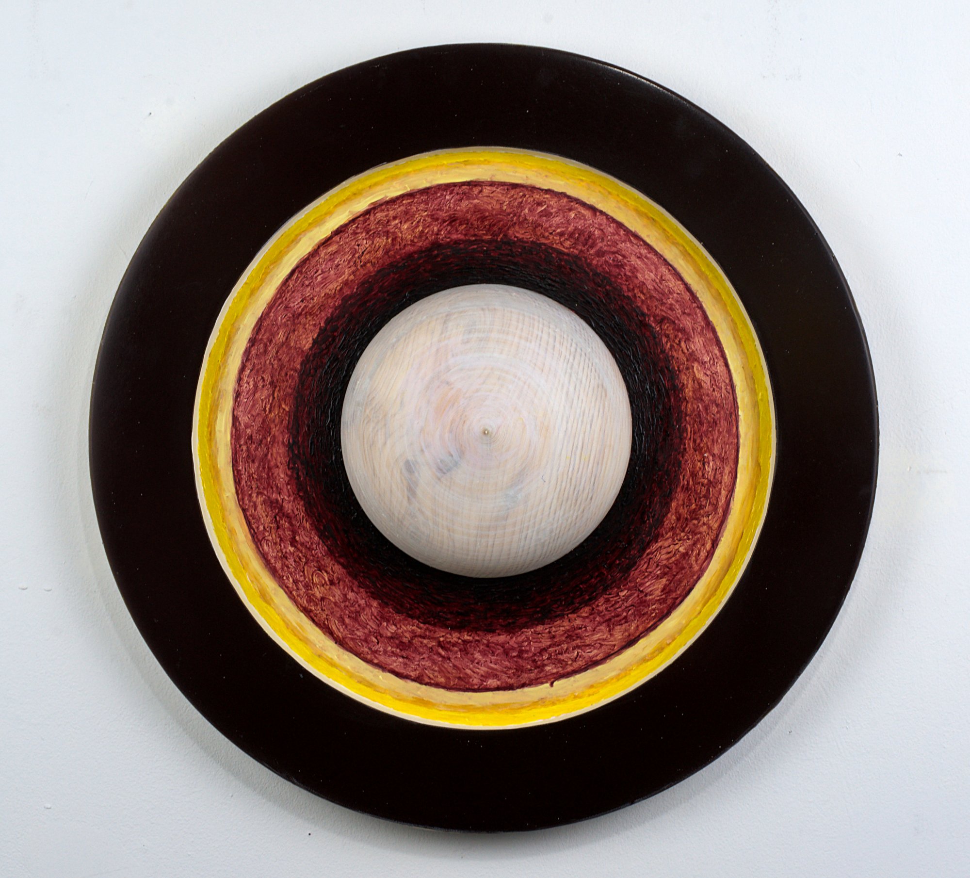 bez tytułu, techn. olejno-żywiczna, żywica epoksydowa, deska, średn.55 cm, 2023