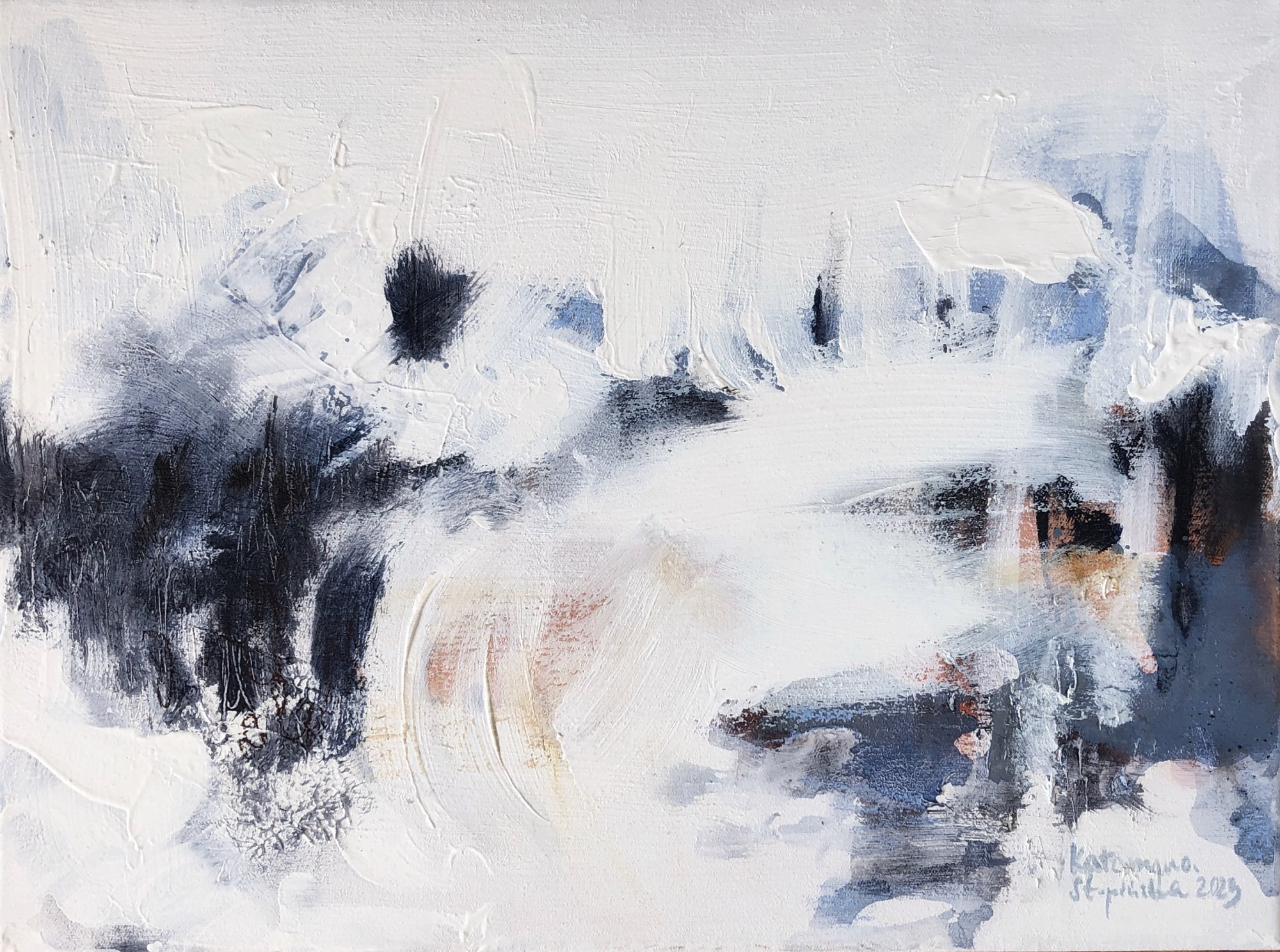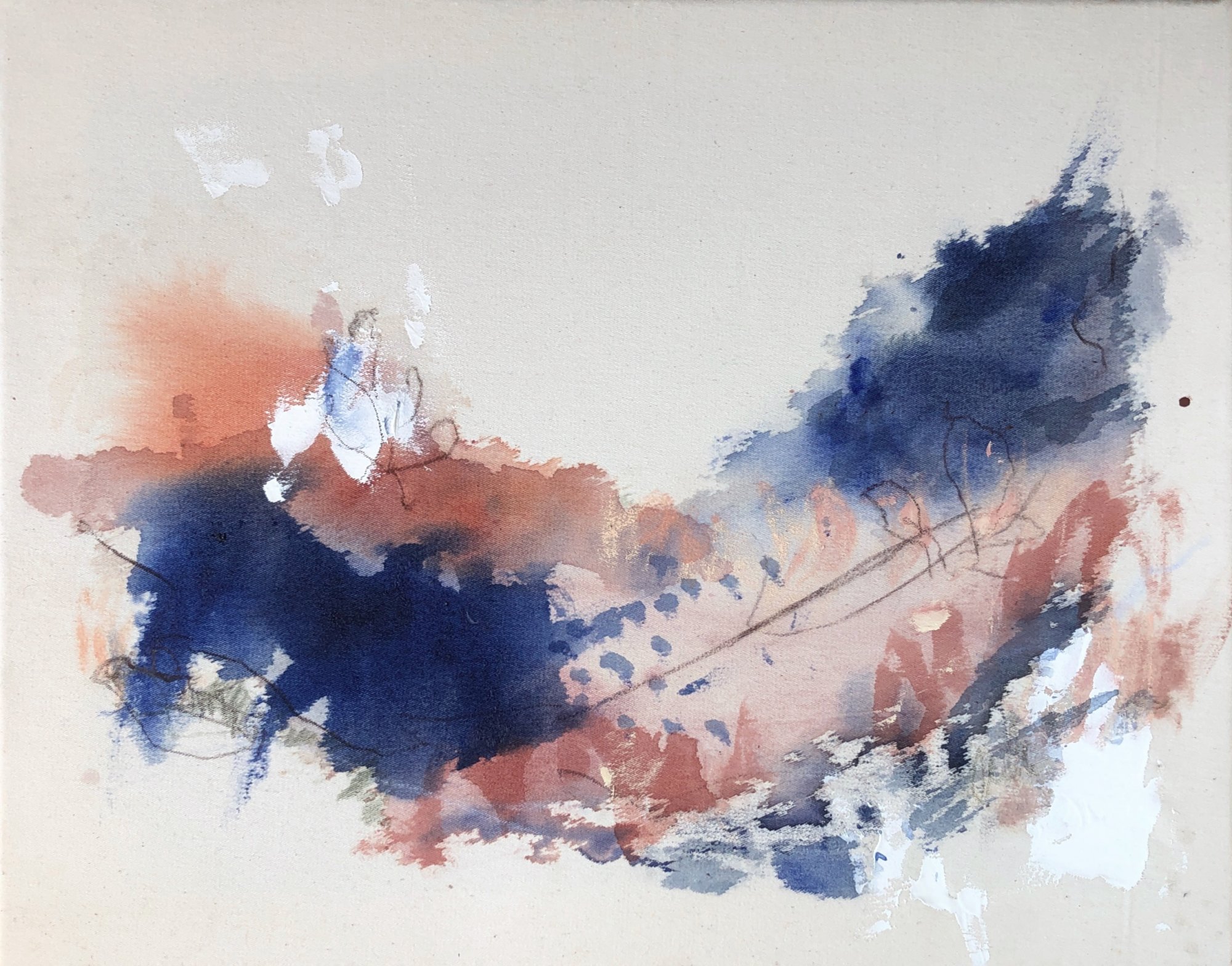 technika mieszana na surowym płótnie