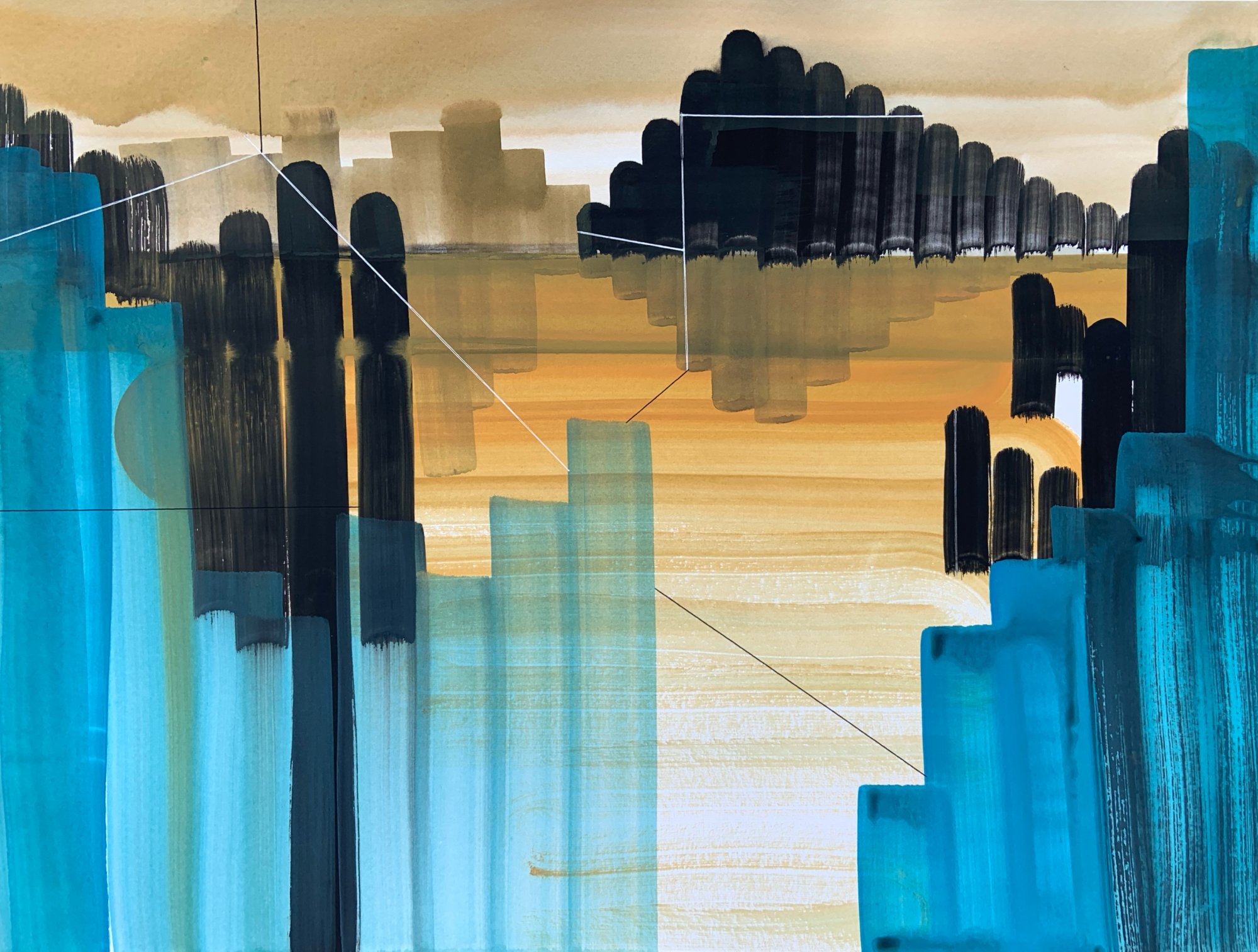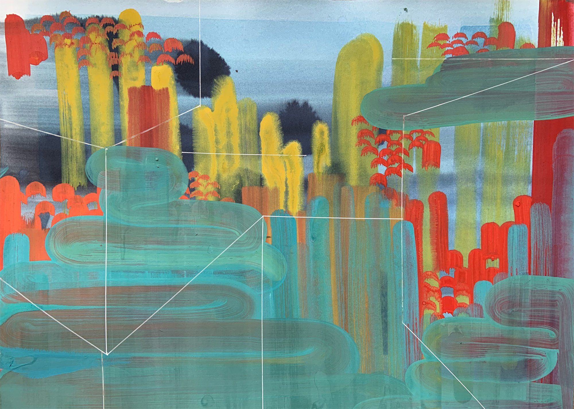 gwasz i akwarela na papierze, długopisy
